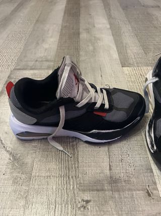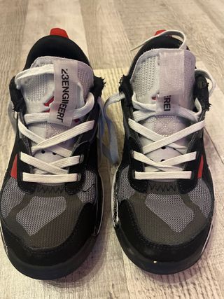 Zapatillas Jordan Air 200E en tonos negro y gris. - Diseño moderno y deportivo. - Etiqueta 23ENGINEER en la lengüeta. - Cordones blancos. - Detalles en rojo.