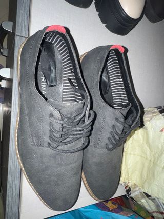 Elegantes zapatos de vestir para hombre. - Diseño moderno y sofisticado. - Cierre con cordones. - Detalle de costura en la suela. - Forro interior a rayas.