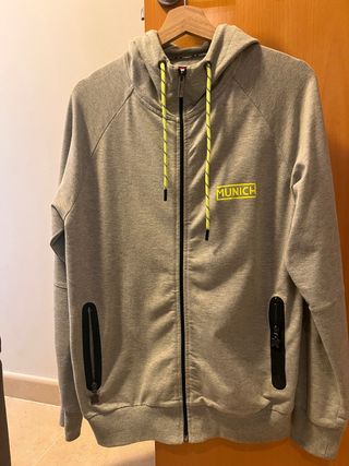 Chaqueta chándal con capucha y cremallera completa. - Logo de Munich en el pecho. - Cordones de ajuste en la capucha. - Bolsillos laterales con cremallera.