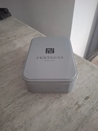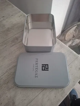 Elegante caja metálica de Pertegaz. - Color gris. - Diseño moderno.