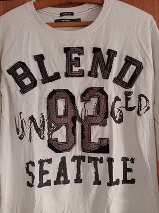 Camiseta de Manga Larga Unisex "BLEND" (Slim Fit) - Estampado - BLEND 92 UNGGED SEATTLE. - Letras Bordadas. - Talla M. - Unisex. - 100% Algodon. - Manga Larga. - Cuello Redondo.