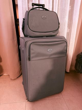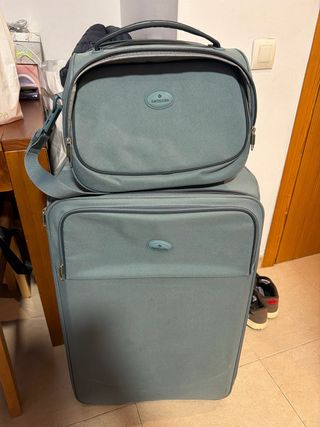 Conjunto de maleta grande y neceser a juego de la marca Samsonite. - Maleta espaciosa con compartimentos. - Neceser con asa y correa. - Diseño elegante y funcional. -Presenta desgaste en la parte de abajo. El resto todo ok.