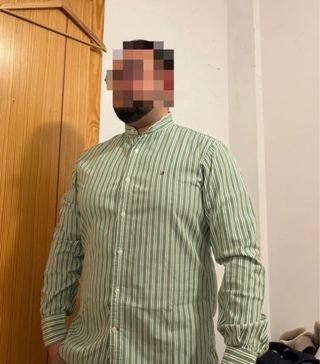 Camisa de manga larga con un diseño de rayas finas en tonos azules. Presenta cuello abotonado y dos bolsillos en el pecho. - Cuello con botones. - Dos bolsillos en el pecho. - Diseño de rayas.