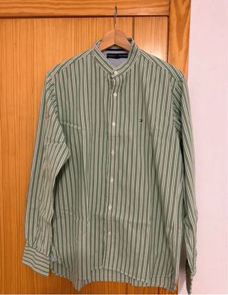 Camisa de manga larga con un diseño de rayas verticales. - Cuello mao. - Cierre de botones. - Pequeño logo en el pecho.