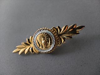 Precioso broche antiguo con la imagen de la Virgen. - Diseño detallado. - Acabado en oro y multicolor.