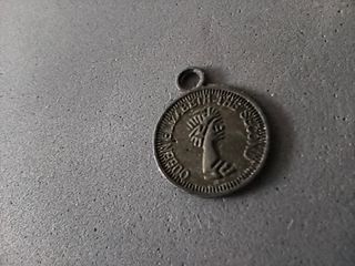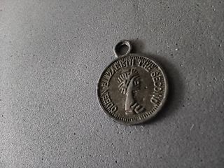Colgante con la efigie de la Reina Isabel II. - Diseño circular. - Acabado plateado.