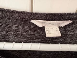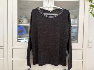 Jersey de punto fino con detalle de perlas. Talla S. Oversize (talla grande). - Manga larga. - Cuello redondo. - Diseño con perlas repartidas por toda la prenda.