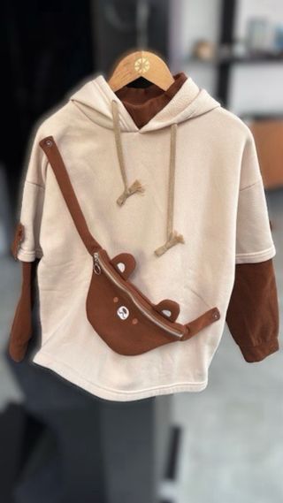 Sudadera Beige y Marrón con Riñonera Osito