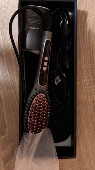 Cepillo alisador de la marca Cecotec, modelo Bamba Instantcare 1100. Nuevo, sin usar. - Tecnología Pro Ionizer para un cabello brillante y sin encrespamiento. - Cerámica avanzada con extracto de aguacate. - Pantalla digital y temperatura regulable. - Alcanza hasta 220°C. - Diseño ergonómico para un agarre cómodo