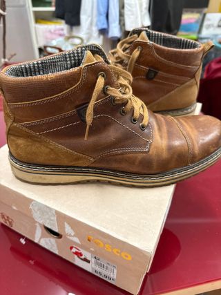 Botas de estilo casual para hombre. - Material exterior de piel y ante. - Cierre con cordones. - Forro interior a cuadros.