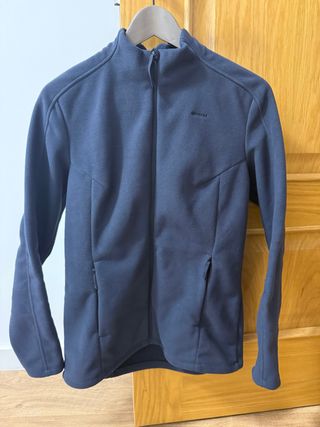 Chaqueta polar Quechua MH500 de color azul. - Cierre completo con cremallera. - Dos bolsillos laterales con cremallera. - Cuello alto. usado una vez