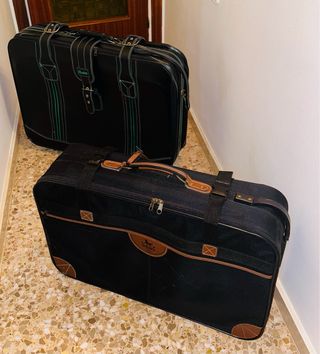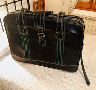 Ideal para viajeros con estilo, coleccionistas o decoración de interiores!Vendo este conjunto de dos maletas clásicas en excelente estado de conservación. Son piezas robustas, con mucha personalidad y ese aire retro que ya no se encuentra en las maletas modernas de plástico. 1. Maleta SHERPA (Negra/Marrón): Un clásico de la marroquinería. Diseño elegante en color negro con acabados y vivos en color tabaco. Incluye el icónico logo del caballo. Muy espaciosa y resistente. 2. Maleta RODELLE (Negra/Verde): Una pieza única con un toque "eighties". Destaca por sus costuras en contraste verde turquesa y el logo en relieve a juego.