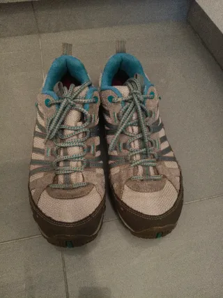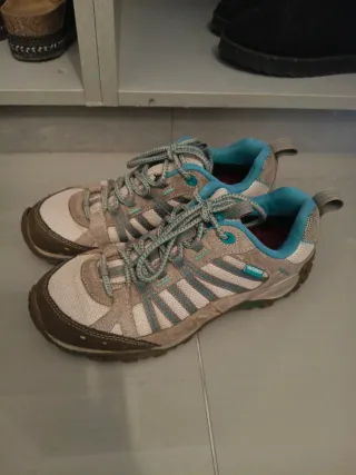 Botas de montaña beige y turquesa