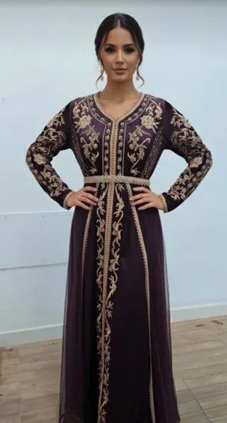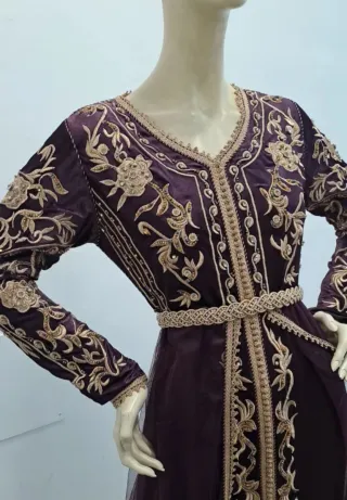 Hermoso vestido de fiesta hecho a mano, tela brillante morada espectacular, capa de tul. Cinturón incluido. Muy poco uso