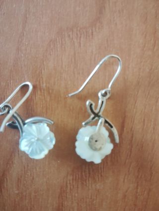Elegantes pendientes con diseño de flor de nácar y detalles plateados. - Cierre de anzuelo. - Diseño floral delicado. - Materiales de calidad.