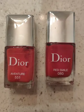 Dos esmaltes de uñas de la marca Dior en tono rojo. - Esmalte Dior Aventure 551 - Esmalte Dior Red Smile 080