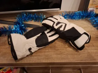 Guantes de esquí ST. SKING. - Diseño moderno en blanco y negro. - Cierre de velcro en la muñeca para un ajuste seguro. - Ideales para deportes de invierno.