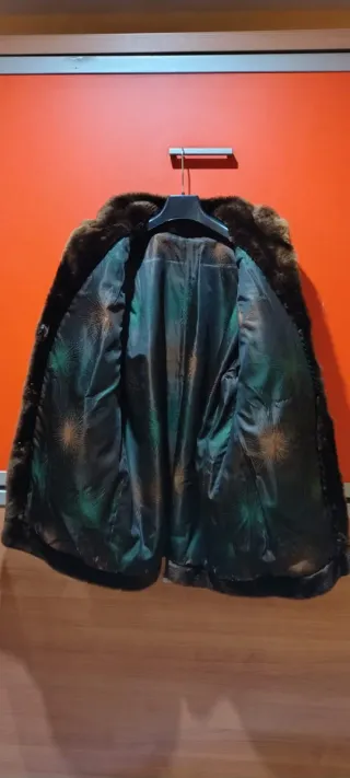 Abrigo de muton con un diseño interior llamativo. - Forro con estampado de estrellas en tonos verdes y marrones. - Cuello y mangas con acabado de pelo. Recoger en Santa Coloma de Gramenet