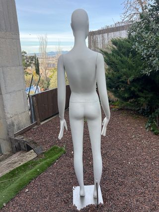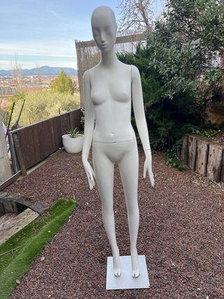 Maniquí de mujer de cuerpo entero, ideal para escaparates o exposiciones. - Diseño elegante y estilizado. - Base metálica para mayor estabilidad.