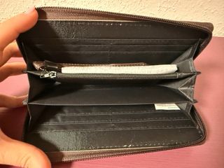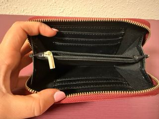 Monedero C&A de color fucsia. - Diseño compacto y elegante. - Cierre de cremallera completo. - Signos de desgaste en las esquinas como se aprecia en las fotos.