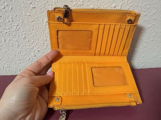 Pequeño monedero de la marca Parfois en color naranja. - Diseño con cremallera. - Muy completo. - Pequeños signos de desgaste que se aprecia en las fotos.