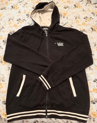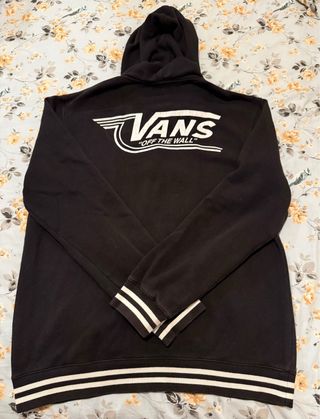 Sudadera con capucha Vans en colaboración con Cathy Van Engel. Muy rara de encontrar. Talla XL con detalles bordados (fotos 4 y 5) y estampado grande en la espalda. Usada pero con mucha vida por delante.
