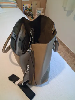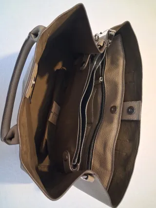 Bolso de mano elegante y espacioso. Porta documentos - Material: Piel sintética. - Cierre de cremallera. - Bolsillos exteriores. - Asas cómodas. Le falta un broche
