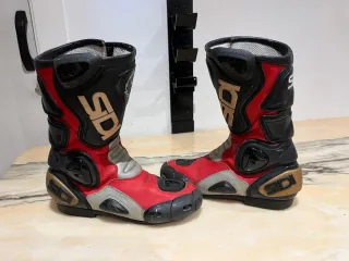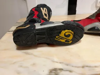 Botas de moto de la marca Sidi en colores negro y rojo. - Diseño deportivo. - Protecciones integradas. - Cierre de velcro y cremallera.