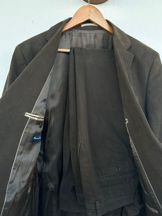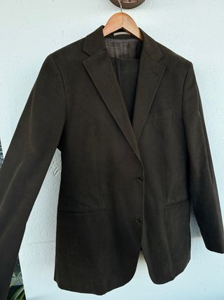 Elegante conjunto de traje de Massimo Dutti. Usado literalmente 1 sola vez. - Chaqueta de corte clásico. - Pantalón a juego. - Color marrón oscuro.