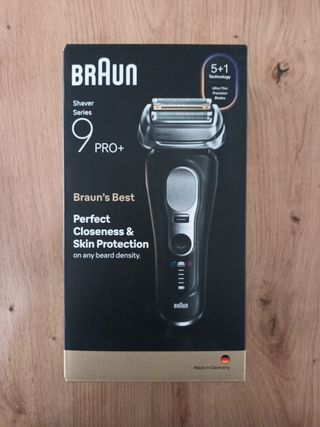 Afeitadora eléctrica Braun Serie 9 Pro+ en color negro. Diseñada para un afeitado apurado y protección de la piel. - Tecnología 5+1. - Cuchillas Ultra Thin Precision. - Fabricada en Alemania. La necesito para depilarme todo el cuerpo, necesito otro tipo de maquina. Solo probada en un brazo. Costo 229€. Comprada el 31/12/2025.