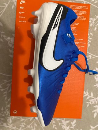 Bota de fútbol Nike Tiempo Pro en color azul y blanco. - Diseño deportivo. - Cierre de cordones. - Suela con tacos para césped.