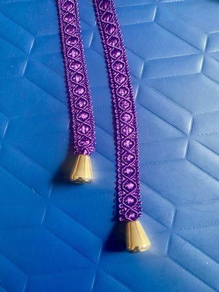 Lligacames con un diseño trenzado y detalles metálicos. Precio por pareja de 2 lligacames (uno para cada pierna) Cada uno mide 1 metro aproximadamente - Acabado trenzado. - Terminales metálicos dorados, plateados o envejecidos12