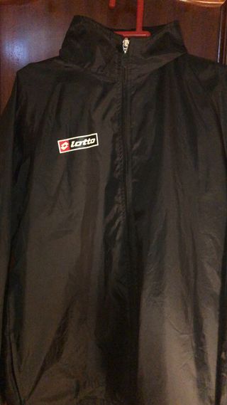 Chubasquero cortavientos de la marca Lotto. - Color negro. - Cierre de cremallera frontal. - Cuello alto. -Capucha Reversible