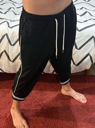 Pantalón deportivo tipo pirata, con un corte holgado y moderno. - Cintura con cordón ajustable. - Detalle de raya lateral blanca. - Puños con doble raya decorativa.