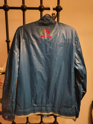 Chaqueta con un diseño llamativo y moderno. - Detalle de dragón en la parte trasera. - Logo de la marca LMCHO. - Combinación de colores azul y rojo.