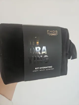Kit de cuidado personal FHOS. - Neceser negro. - Incluye crema, sérum y protector solar.