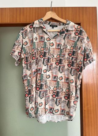 Camisa de manga corta con un estampado geométrico y abstracto muy llamativo. Perfecta para un look casual y original. - Cuello camisero. - Cierre de botones. - Diseño único.