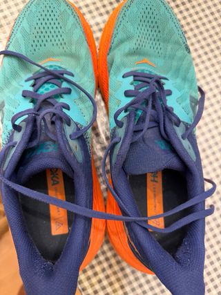 Zapatillas de trail running de la marca La Sportiva, en perfecto estado. - Diseño en negro y naranja. - Ideales para montaña.