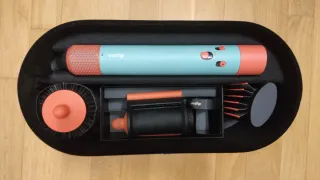 Set de secador y accesorios para el Dyson Airwrap. - Incluye cuerpo principal y varios cabezales para diferentes estilos de peinado. - Diseñado para el cuidado del cabello. - Incluye estuche para guardarlo - Tonos naranja y turquesa. - Comprado en marzo 2025 - Usado 3 veces