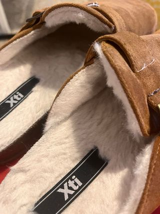Zuecos cómodos y cálidos con forro interior. - Exterior de ante. - Detalle de hebilla metálica. - Suela antideslizante.
