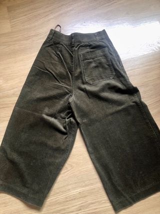 Pantalón de pana, verde militar, corte pierna ancho tipo palazzo (largo por encima del tobillo) ideal para llevar con botas. - Tejido de pana. - Color verde oliva.