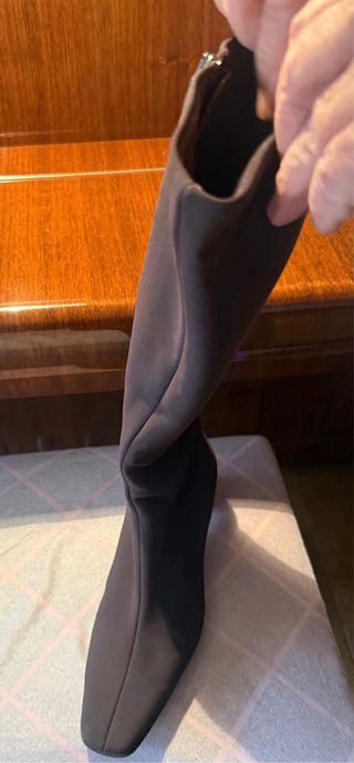 Botas elásticas de caña alta para mujer. - Material elástico. - Tacón cuadrado. - Cierre de cremallera lateral. Alto 37 cm Taco 5 cm Ancho 18 parte de arriba total 36 cm