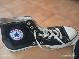 Zapatillas altas polipiel Converse All Star. - Color negro y blanco. - Cierre con cordones.
