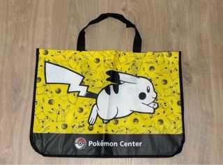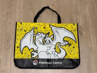 Bolsa reutilizable con un diseño vibrante de Pikachu y Charizard. - Fondo amarillo con estampado de Pokémon. - Ilustración principal de Charizard y Pikachu. - Base negra con el logo de Pokémon Center. Dispongo de más unidades.