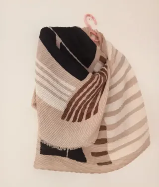 Elegante Pañuelo o foulard con un diseño geométrico y de rayas. - Estampado abstracto en tonos beige, negro y marrón. Acabado con flequitos en bordes. - Combinación de colores neutros y oscuros. - Textura plisada. De tacto muy suave, aporto fotos para visualizarlo si necesitas más información no dude en preguntar. Hago envíos. !!