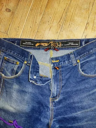 Pantalones Vaqueros azul oscuro /grises. Tienen un diseño moderno y son cómodos.talla 38 - Cierre de botones. - Bolsillos delanteros y traseros. - Bajo deshilachado.