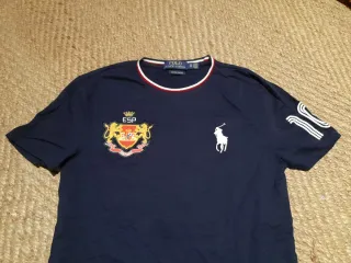 Camiseta de manga corta de Polo Ralph Lauren con diseño inspirado en España. - Escudo de España con las siglas ESP. - Logo de Polo Ralph Lauren bordado. - Detalle de líneas blancas en la manga. - Cuello con ribete en blanco y rojo.