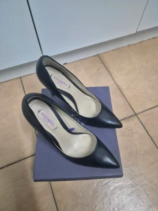 Elegantes zapatos de tacón de la marca Mango. - Diseño de punta fina. - Tacón de altura media. - Material exterior de piel. Zapatos de tacon usados una vez. Tacon: 10 cm Pie: 24 cm