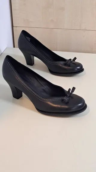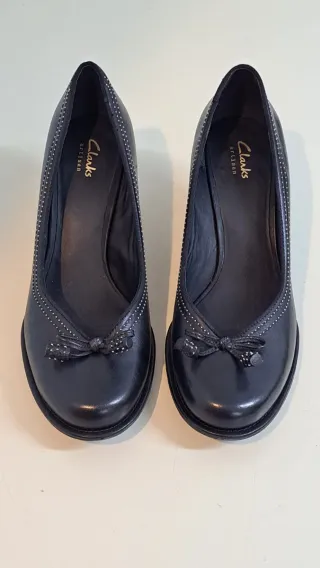 Elegantes zapatos de salón Clarks con tacón. Un clásico que no pasa de moda. Son talla 42, pero para pie 41 (tallan pequeño) Usados 4/5 ocasiones. - Diseño atemporal. - Detalle de lazo en la punta. - Costuras decorativas.