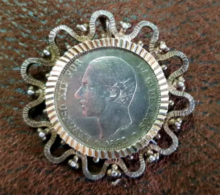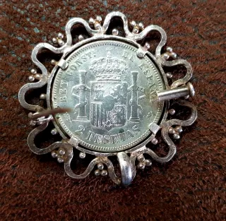 Broches Plata engarzado Moneda Antigua de 2 peseta